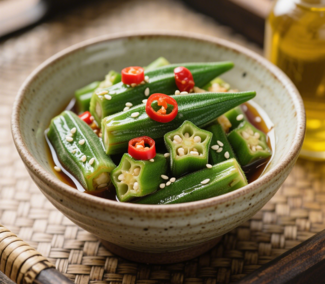 那么,香油在涼拌菜中究竟有何 “提鮮魔法”?首先,它的香氣極具穿透力,能瞬間喚醒味蕾。當溫潤的香油裹住秋葵的每一寸肌理,芝麻的焦香與秋葵的清鮮碰撞,仿佛在舌尖奏響一曲鮮香交響樂。其次,香油的油脂分子能與秋葵中的水分、礦物質完美融合,不僅讓味道更顯層次,還能鎖住食材的鮮嫩,讓口感更順滑。尤其對于處暑時節的腸胃來說,適量的香油能起到溫潤護胃的作用,與秋葵的去燥功效相輔相成。